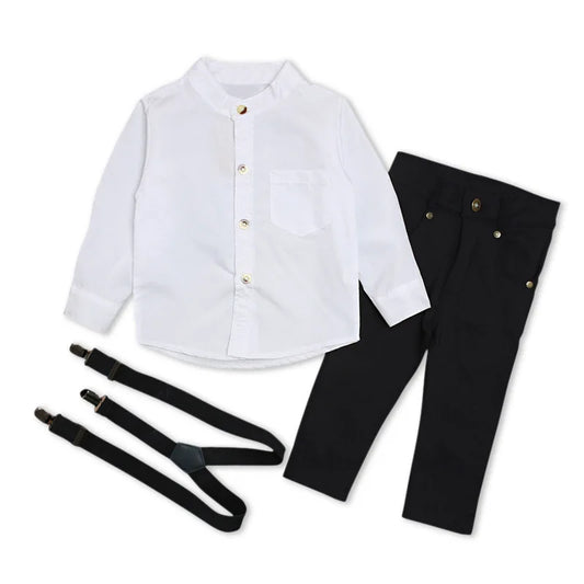 3 Piece Set - Jeans, White Button Down, and Suspenders