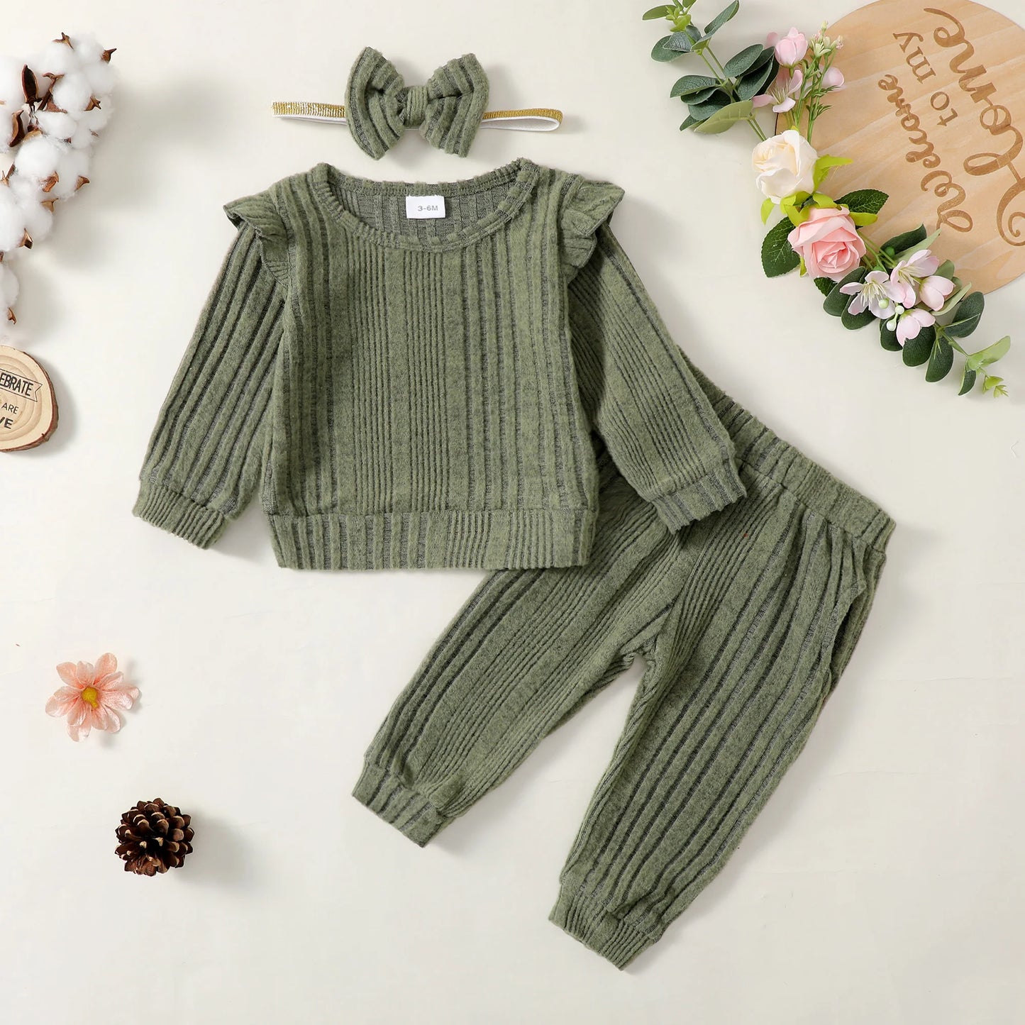 Introducing our adorable green toddler's ensemble! This charming set features a soft top and bottom designed with comfort and style in mind. The delightful frilly sleeves add a touch of playful elegance, while the gentle, cozy fabric ensures your little one stays comfy all day long. Perfect for both playtime and special occasions, this outfit is a delightful addition to any toddler's wardrobe!